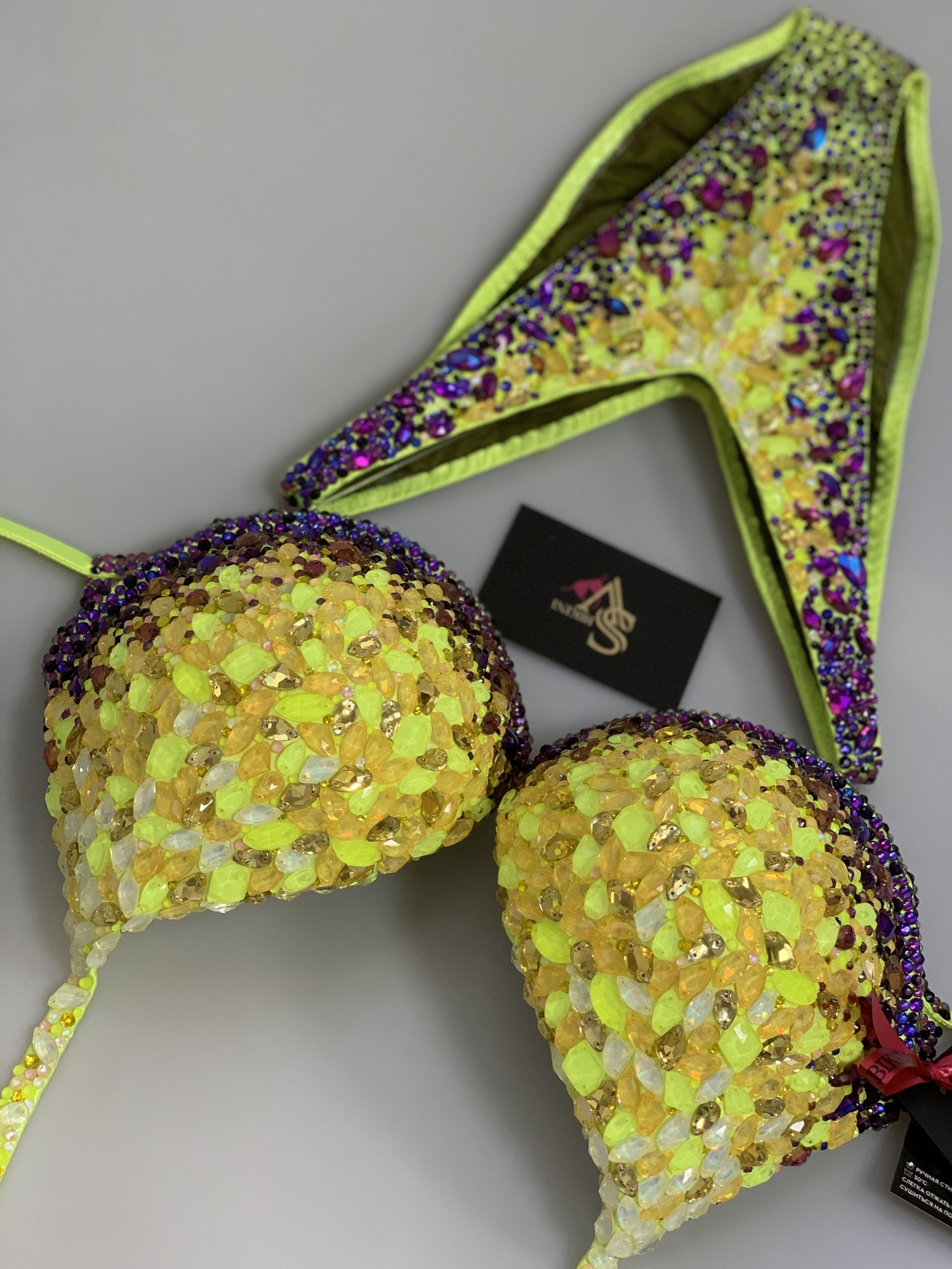 Спелые, «тающие во рту» крупные камни в обрамлении контрастных страз — это яркий экзотический дизайн, который создаст атмосферу карнавала на сцене!