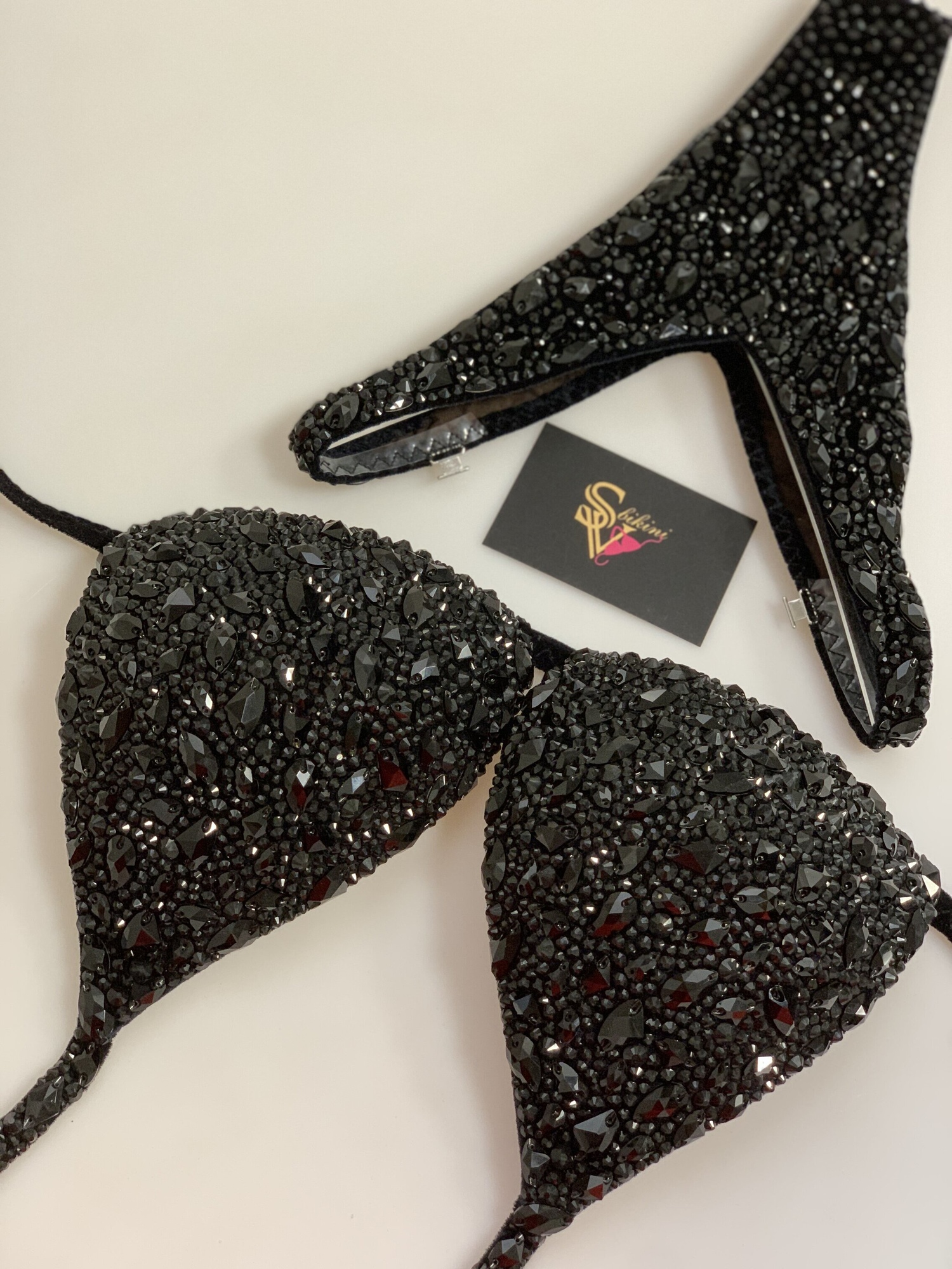 Полностью черный купальник для любителей классики с добавлением популярных крупных камней превратит Вас на сцене в грациозную пантеру.