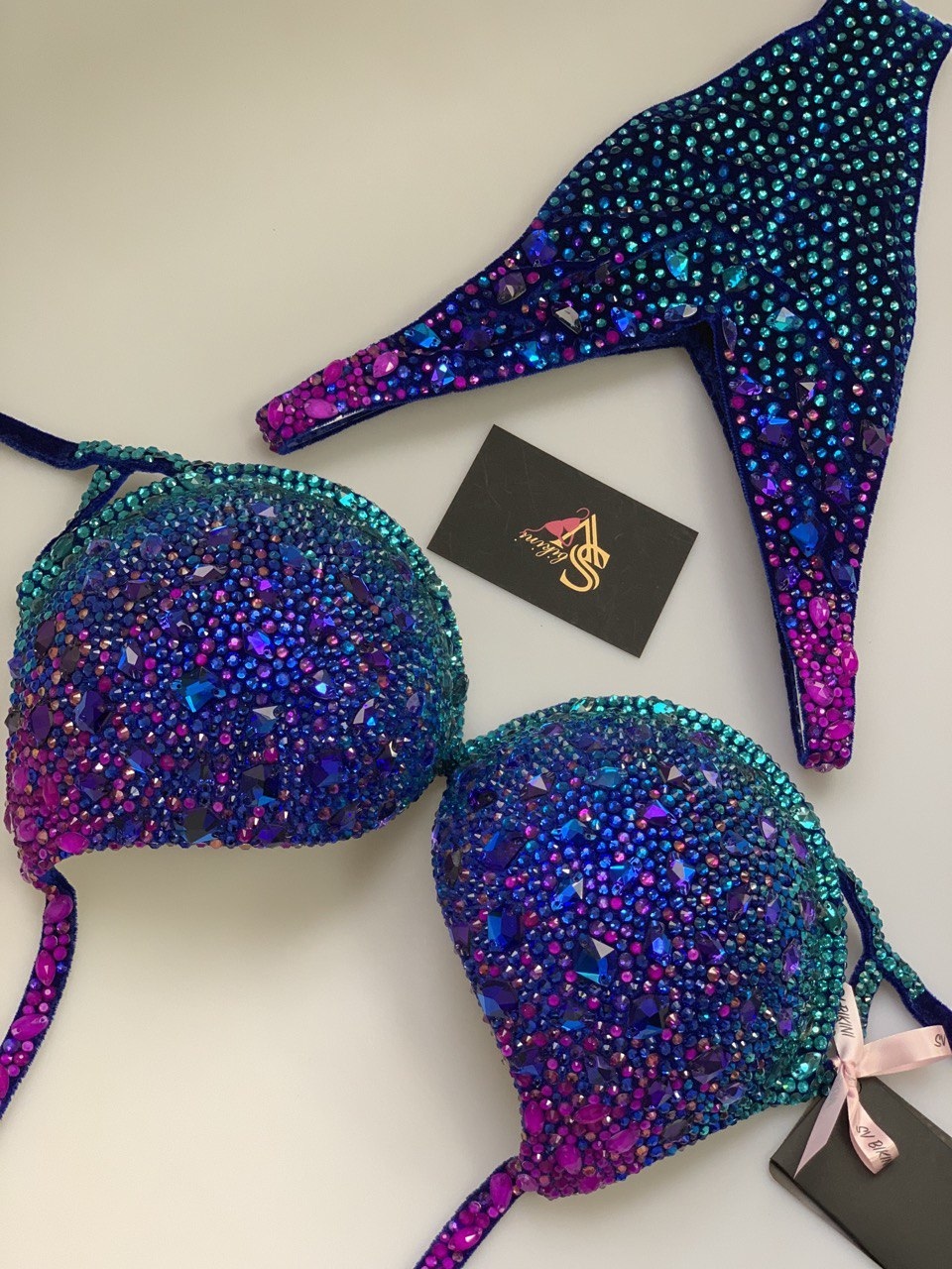 Основа — ярко-синий бархат, роскошный, смелый, невероятно красивый дизайн, обязательно выделит вас в линейке!