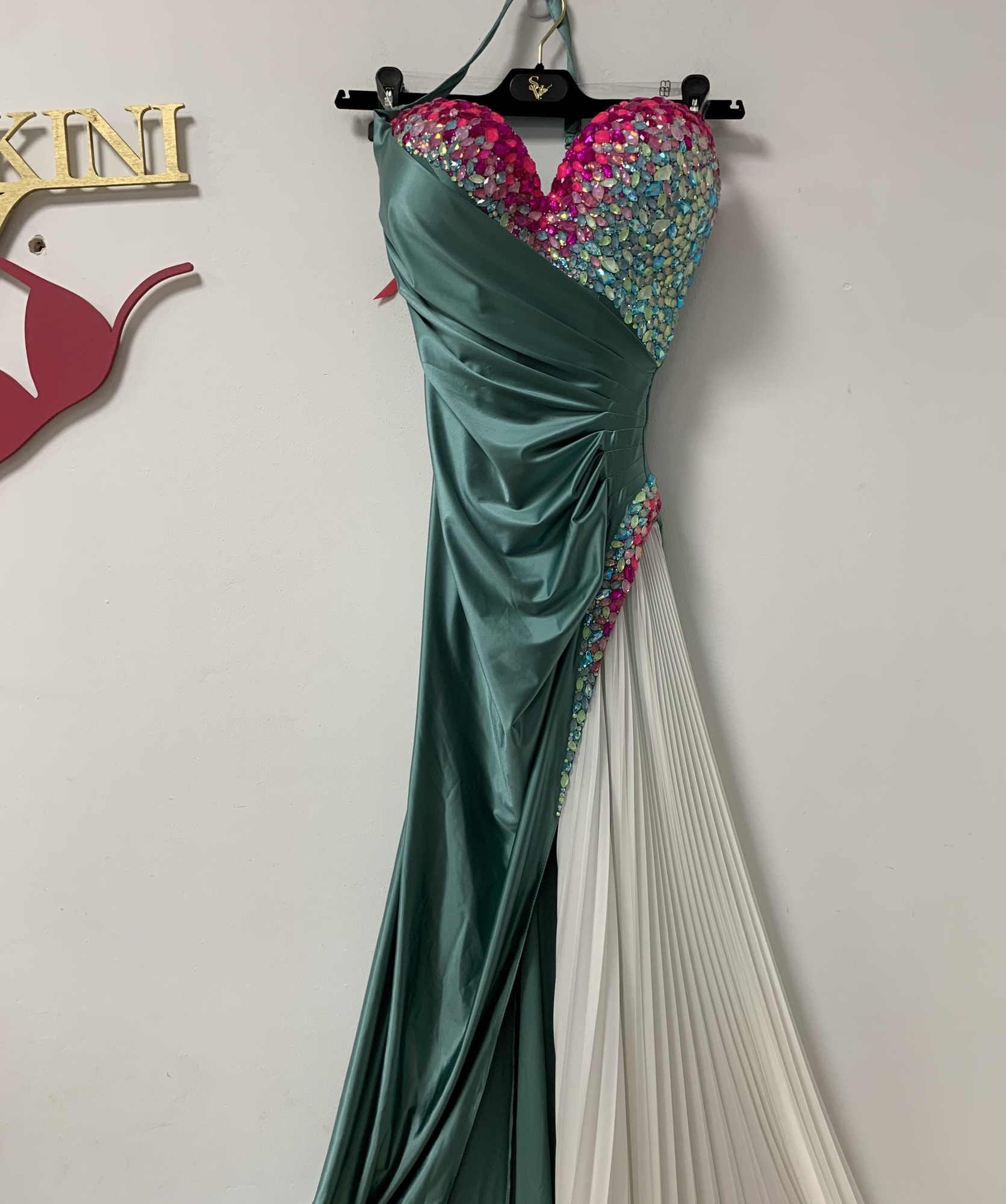 Основа — атласный бифлекс Фисташка. Гофре из белого шелка!