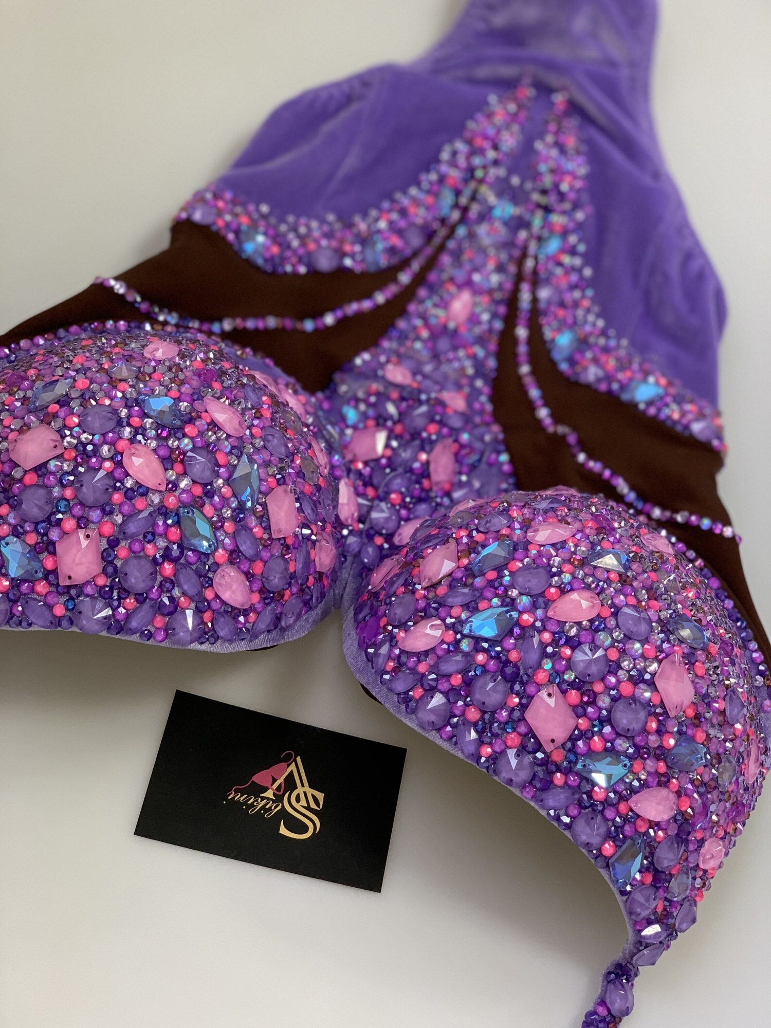 Популярная модель с оптическим эффектом — идеально! Подчеркнет тонкую талию! Нежный лиловый бархат и электрики Сваровски создадут образ сияющей молодости