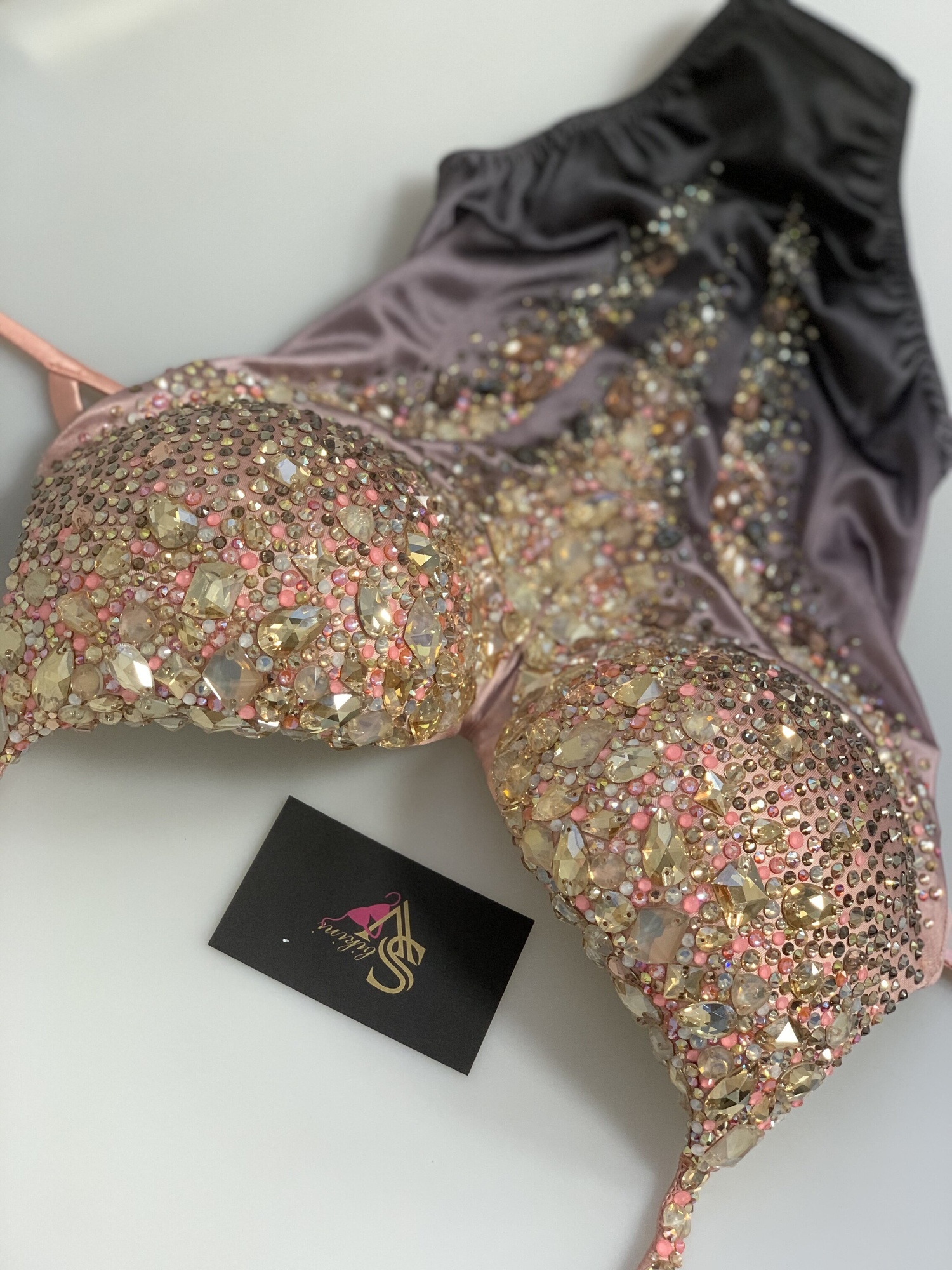 Основа — атлас персик/черный градиент.