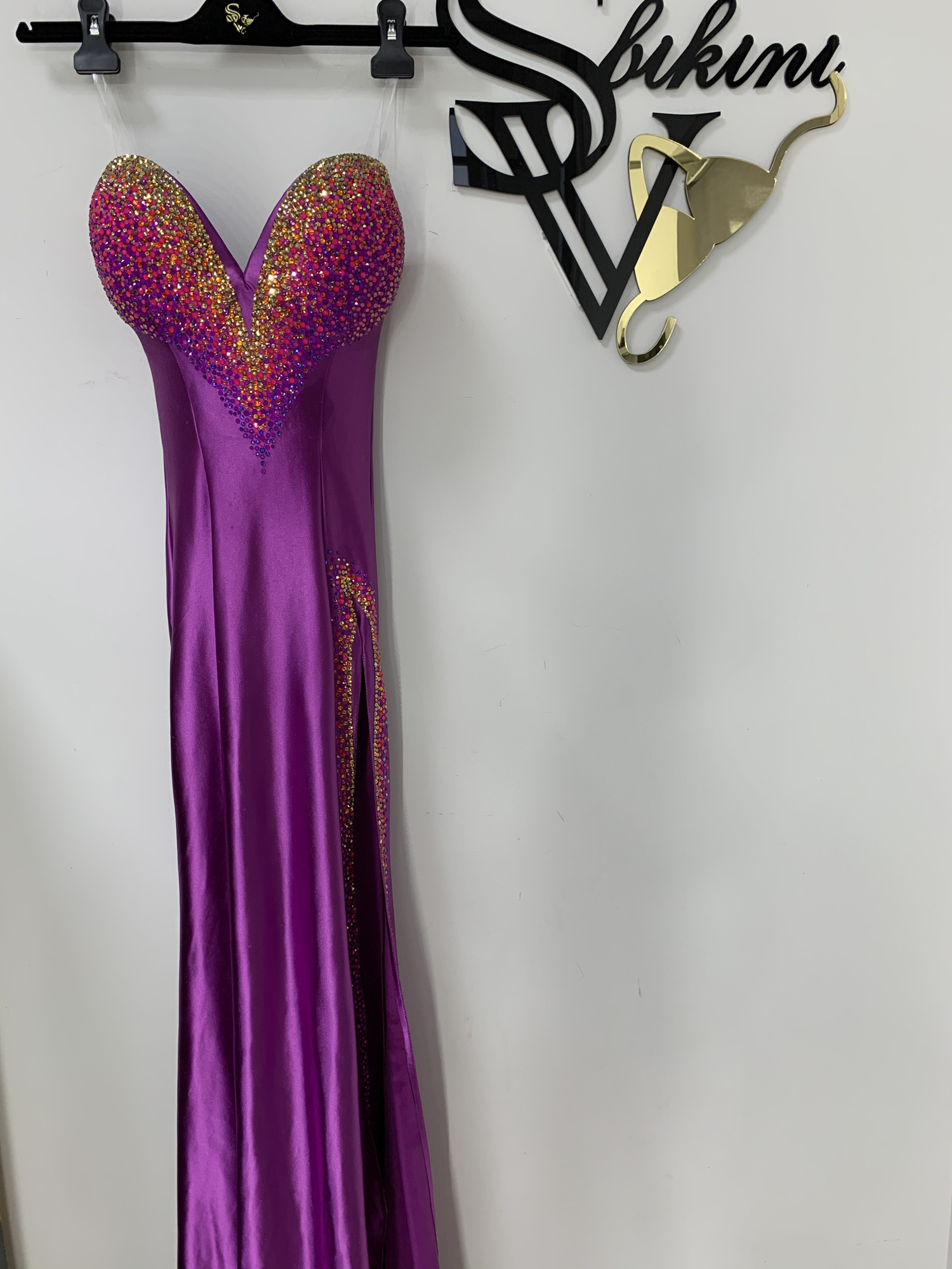 Бесподобное платье оттенка фиолетовая фуксия будет ярко и празднично смотреться на сцене!