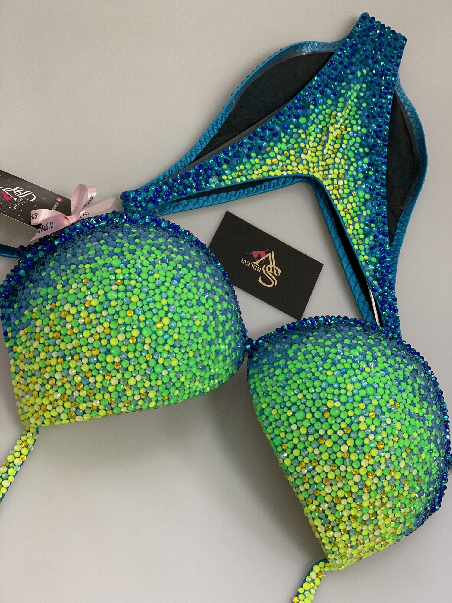 Насыщенные голубые и зеленые цвета, яркая база, классический микс создают атмосферу отпуска, экзотического путешествия. Так и хочется примерить этот эффектный дизайн!