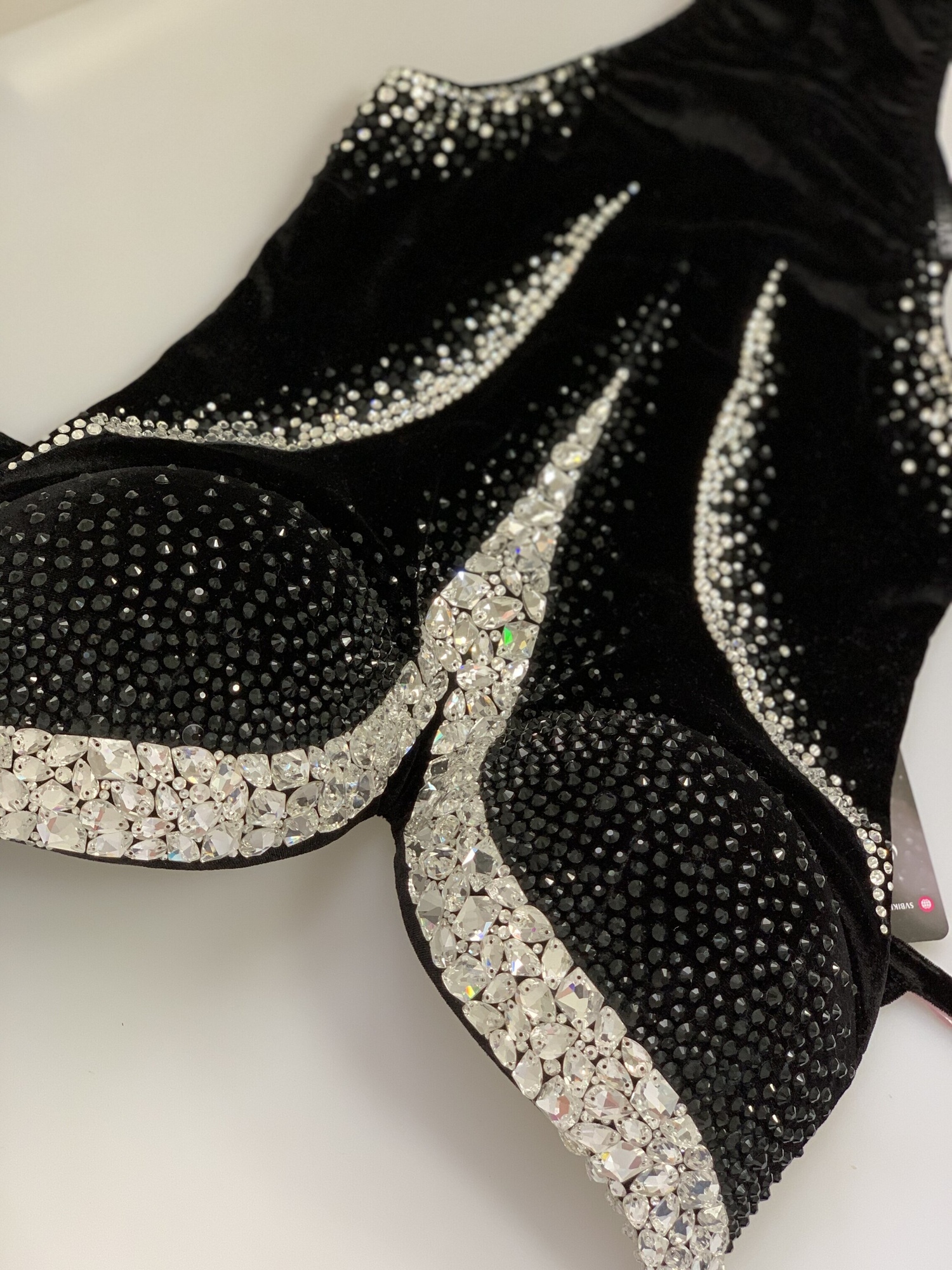Минималистический дизайн утонченно и роскошно смотрится на черном бархате, который идеально подчеркивает силуэт.