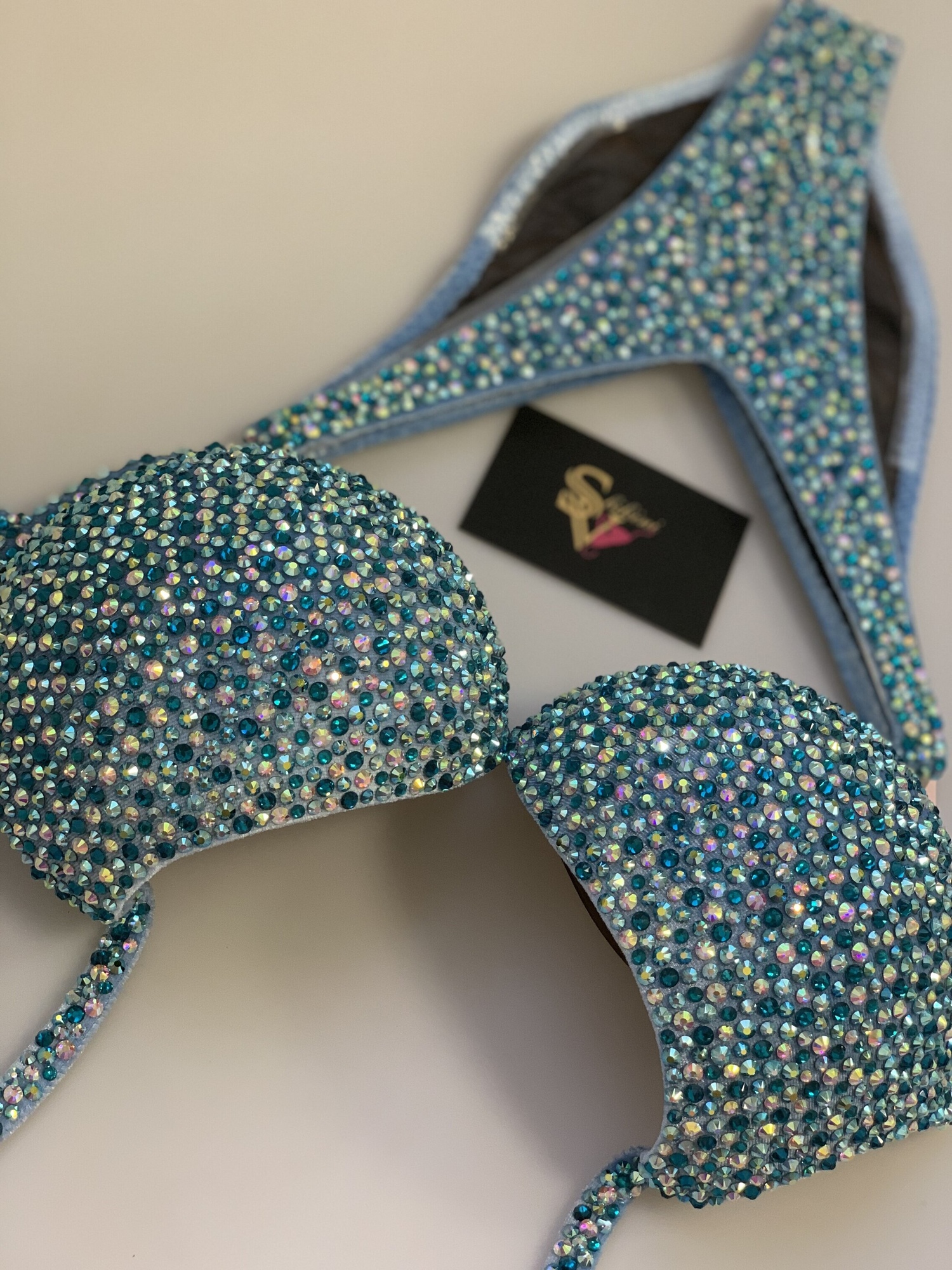Основа — бледно-голубой бархат, микс голубых, лазурных страз и хамелеонов создает очень нежный и блестящий образ!
