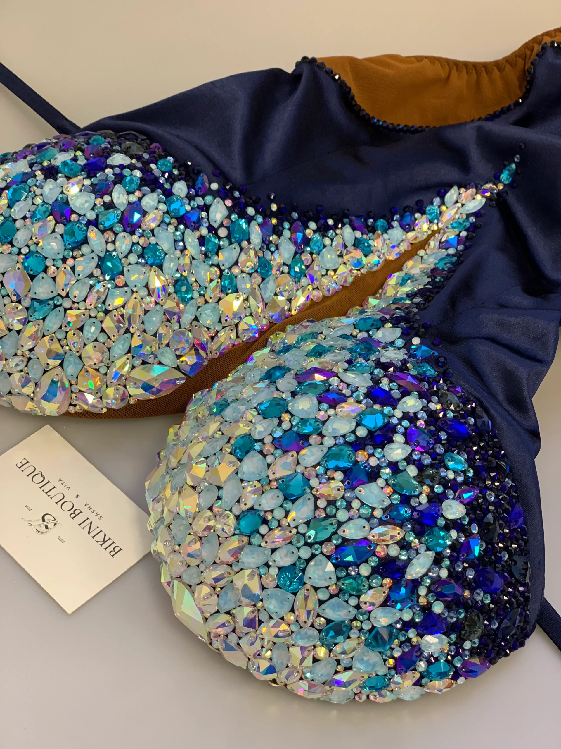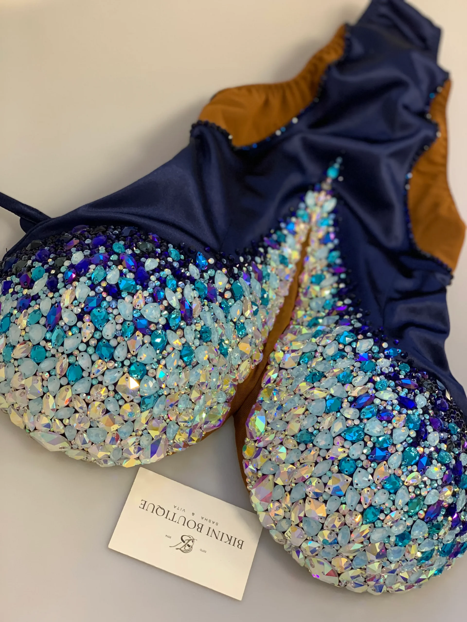 Изумительной красоты дизайн сочетает все оттенки синего. Форма купальника визуально удлиняет ноги и подчеркивает грудь. Восхищенные взгляды обеспечены!